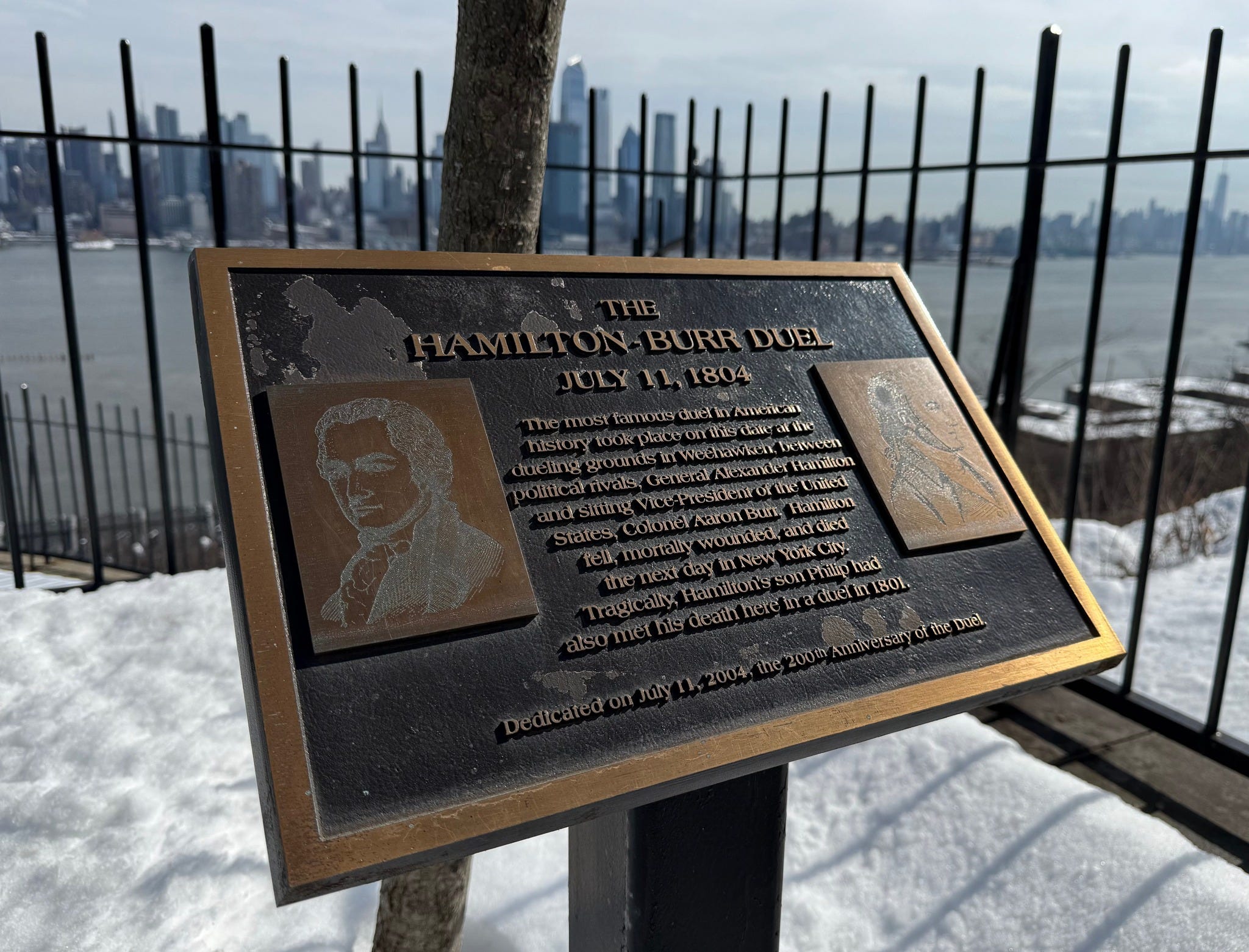 Dedicated on July 11, 2004, the 200th Anniversary of the Hamilton-Burr Duel.”