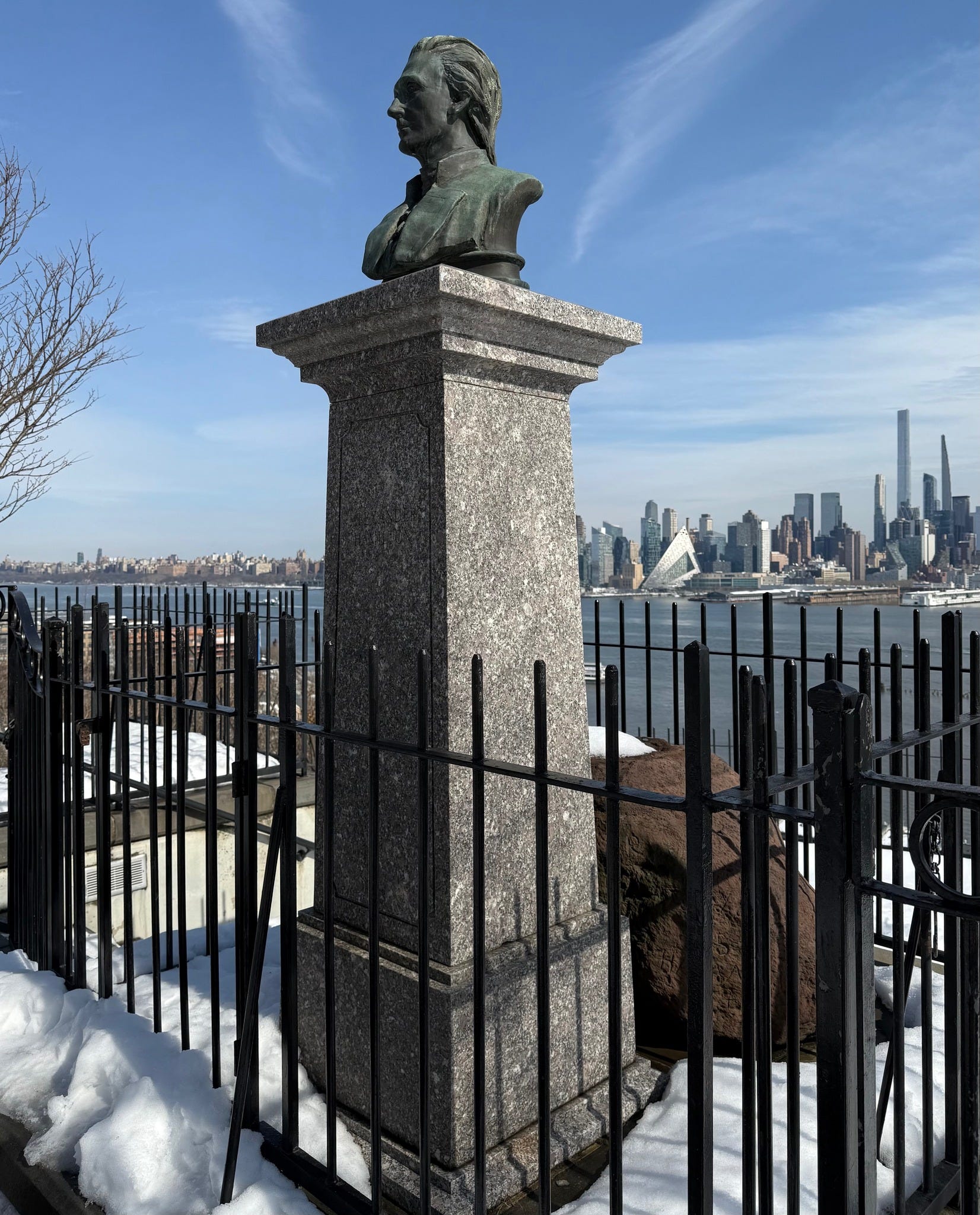 The shocking and spectacular location where the Vice President of the US killed in a duel the first Secretary of the Treasury… Which is quite unbelievable… Even for me - and I teach an entire class on dueling in literature - since Russian novels such as Eugene Onegin, The Hero of Our Time, Fathers and Sons, War and Peace, and Brothers Karamazov all contain duel scenes - which occur in dozens of 19th century novels - from Dumas’ The Three Musketeers and The Count of Monte Cristo to Stendhal’s The Red and the Black and Flaubert’s Sentimental Education…